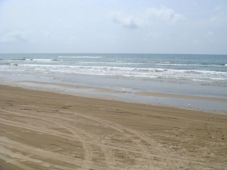 千里浜なぎさドライブウェイは日本で唯一、車で走ることの出来る砂浜です。観光バスなどの大型車両も通行することが出来るんです。その理由は粒子の小ささにあります。一般的な砂の大きさが0.5mm~1mmなのに比べ、千里浜の砂は約0.25mm!だから海水が染み込んで自然に硬くなったわけです。決して人工的に固められたんじゃないんですよー!と、このような砂浜道路が約8km続いていて今回は実際に観光バスに乗って走りました!!