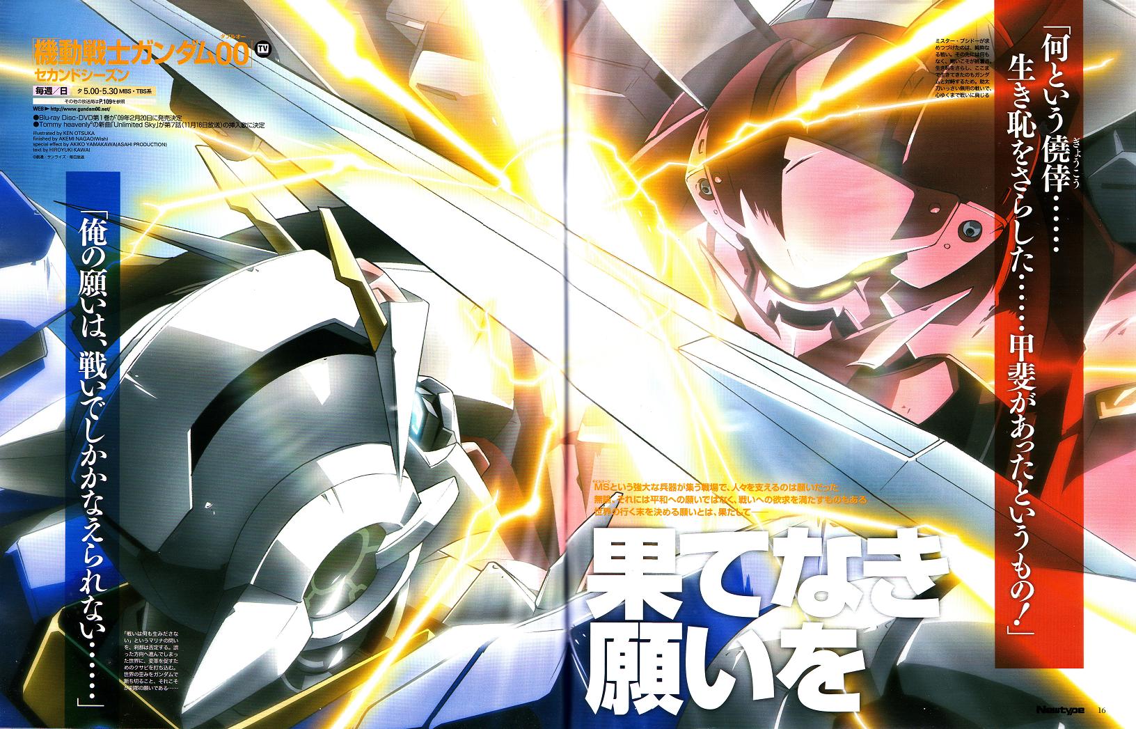 ![]() 作品人気ベスト3 1 位 機動戦士ガンダム00 2 位 コードギアス 反逆のルルーシュ 3位 コードギアス 反逆のルルーシュR2 男性キャラ人気ベスト3 1位 ルルーシュ・ランペルージ 2位 刹那・F・セイエイ 3位 ティエリア・アーデ 女性キャラ人気ベスト3 1位 C.C. 2位 シェリル・ノーム 3位 紅月カレン ガンダム00 TOP10入りキャラ 4位 アレルヤ・ハプティズム 5位 ロックオン・ストラトス 8位 フェルト・グレイス #07 再会と離別と(11月16日放送予定) ある戦いでピーリスの駆るMSアヘッドとともにアレルヤのアリオスガンダムが墜落し行方不明になってしまう。ソレスタルビーイングの母艦プトレマイオスは、その姿を補足出来ないまま戦線からの離脱を余儀なくされる。そのころ、海岸線に不時着したアレルヤとピーリスは、MSを降り直接対峙するのだが・・・・・。 #08 無垢なる歪み(11月23日放送予定) 謎の人物リジェネが突如、ガンダムマイスターのティエリアのもとへ現われた。自分と同じ容姿であるリジェネに驚く彼だったが、そこでもたらされたイノベイターという単語とそれに関係する情報が、さらにティエリアの心を揺り動かす。 #09 拭えぬ過去(11月30日放送予定) 刹那とティエリアは、強敵サーシェスの乗るアルケーガンダムと対峙する。4年前ガンダムマイスターであるロックオンことニールを亡きものにしたサーシェスに怒りをぶつけるティエリア。一方、新たにロックオンを名のりガンダムマイスターに就いたニールの弟ライルは、そのティエリアの言動からサーシェスが兄の敵であることを知るのだった。 #10 天の光(12月7日放送予定) 連邦政府の弾圧に反対する中東諸国の中でも、最大の国力を持つスイール王国。彼らの蜂起とそれによる諸国の追随を懸念した政府は、スイールへのアロウズ派遣を決定。正規軍のセルゲイに、スイール国境付近での状況監視の命を下す。 ![]() アルケーガンダム ガンダムスローネツヴァイの強化型 4年前半壊したツヴァイを最新技術により全面改修した機体 バックパックが強化されていてGNバスターソードもさらに大型になってます。足はスローネと似てますが、腕が異様に長い!「アルケー」とは天使の階級で下位三隊に属する「権天使」の名前。中位三隊に属するエクシア、デュナメス、キュリオス、ヴァーチェの1階級下の天使にあたります。だけどアルケーガンダムの形は天使といより悪魔ですね;; Tommy heavenly6『Unlimited Sky』が挿入歌に決定! 11月16日に放送される「#07 再会と離別と」から使用されます ちなみにTommy heavenly6さんはファーストシーズンの2クールオープニング「Ash Like Snow」を歌っていたthe brilliant greenのボーカルです。し、知ってますよね!? 石川智晶『Prototype』がフル視聴出来ちゃう! http://www.jvcmusic.co.jp/chiaki/ 石川智晶さんのHPでPrototypeのミュージックビデオがフル視聴出来ます。5分を超える大作!